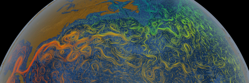 Visualización de las corrientes oceánicas en el Atlántico confeccionada por la NASA.