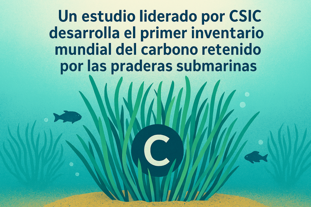 Microsoft Copilot. (2025). Un estudio liderado por el CSIC desarrolla el primer inventario mundial del carbono retenido por las praderas submarinas [Imagen generada por IA].