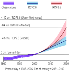 Las dos razones principales son el deshielo de los glaciares y la dilatación térmica del agua de los océanos, efectos que continuarán actuando a lo largo del siglo XXI. Se publican previsiones de subida del nivel del mar periódicamente para diferentes escenarios de emisiones de CO₂ en función de la respuesta mundial a la emergencia climática en las próximas décadas. Según estas proyecciones, a finales de siglo el nivel del mar medio se podría situar entre 45 cm y 85 cm por encima del nivel de principios del siglo XXI.