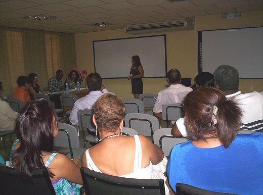 Se realizó, en las primeras horas de la jornada, una reunión entre MSc. Luisa Villafruela Loperea, Directora de Relaciones Internacionales de la Universidad de Oriente, directivos del CNEA y Delegados del Instituto Superior Tecnológico “Central Técnico” de Quito, Ecuador, donde se contó con la presencia de la MSc. Fanny Pomasqui (Directora de Talento Humano) y MSc. Jesús Lorenzo Duperet (Director de Investigaciones). Las intenciones versaron sobre el intercambio académico entre el Instituto y el CNEA, con el objetivo de profesionalizar a los docentes ecuatorianos en áreas técnicas en las ramas , biotecnológica y medicina, ya que según entrevistas realizada a la Directora de Talento Humano, mencionada anteriormente, la matriz productiva de su centro, se focaliza en este aspecto.